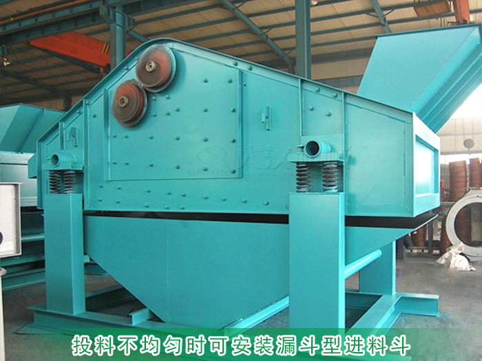 砂巖礦用振動篩一般篩分產量比較大,進料時投料量也會很大,所以很容易造成篩面物料堆積,影響過網(wǎng)率,出現(xiàn)篩網(wǎng)堵塞的情況,所以在進料時需要均勻進料,不要一次性投入過多物料。可在進料口上蓋上加裝一個漏斗型的進料斗,使砂巖勻速進料避免堆積。