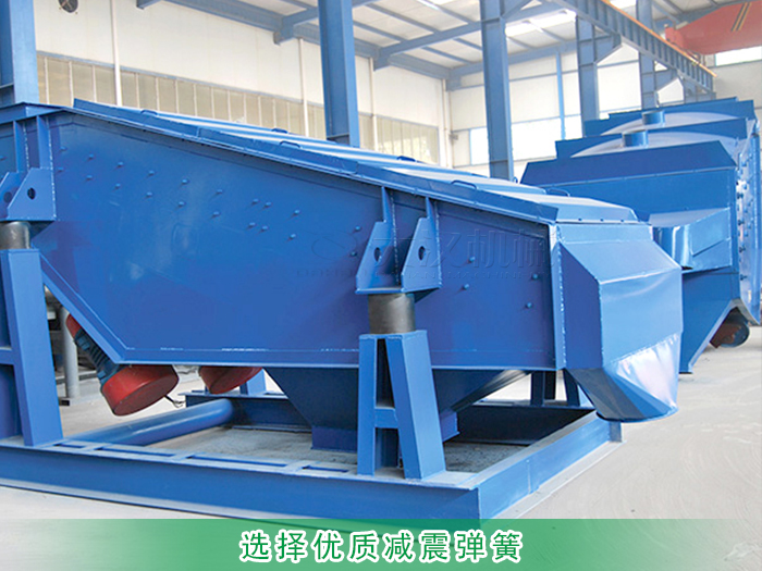 砂巖礦用振動篩因體型較大所以對減震彈簧的質量要求非常嚴格,劣質彈簧會在使用一段時間后,發(fā)生彈簧崩裂、彈性不足等問題來影響篩分效率,甚至會造成在篩分過程中箱體振裂。所以需要選用優(yōu)質減震彈簧,它減震效果和承載力都很好,可有效延長設備使用的壽命。