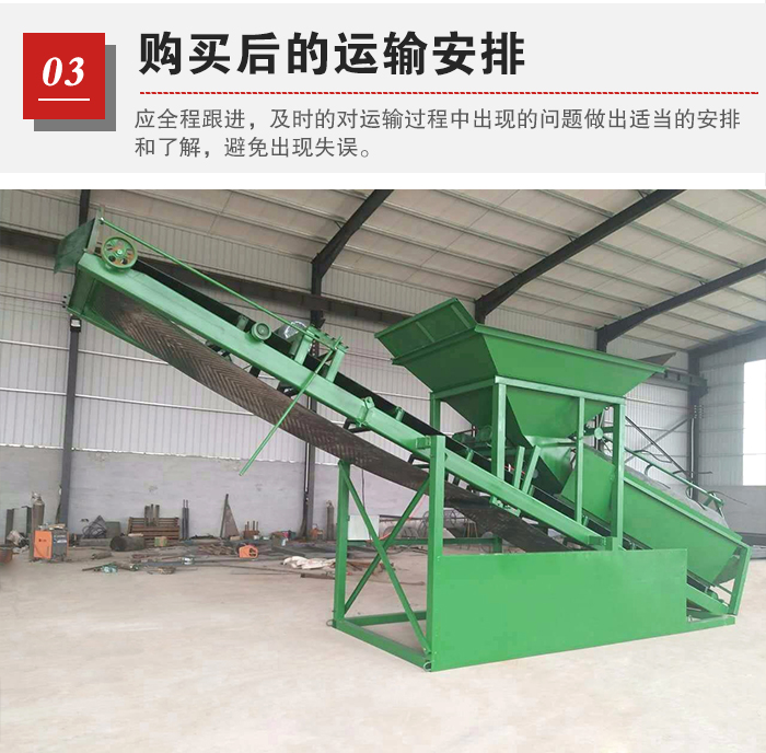 篩沙機在采購完畢后,廠家會在設備完成后進行運輸發(fā)貨,此時,用戶應全程跟進,及時的對運輸過程中出現(xiàn)的問題做出適當的安排和了解,避免廠家出現(xiàn)失誤,出現(xiàn)小配件漏發(fā)等問題。