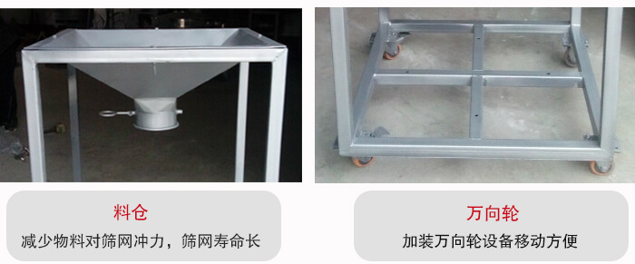 移動(dòng)式振動(dòng)篩又叫振動(dòng)篩料倉(cāng)一體機(jī),底部加裝萬(wàn)向輪,可360度旋轉(zhuǎn)移動(dòng),主要應(yīng)用于篩分場(chǎng)所不固定的環(huán)境,便于用戶移動(dòng),滿足不同地點(diǎn)的工作需要。通過(guò)調(diào)節(jié)料倉(cāng)中的蝶閥從而控制物料進(jìn)入振動(dòng)篩的流量,然后振動(dòng)篩進(jìn)行篩分作業(yè),本品的特點(diǎn)間歇性加料,不用工人不間斷投料節(jié)省人工,蝶閥控制流量大小能提高篩分精度。