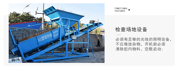 3.篩沙機(jī)運(yùn)轉(zhuǎn)時(shí)不可進(jìn)行修理及清理工作,嚴(yán)禁開(kāi)機(jī)檢修;