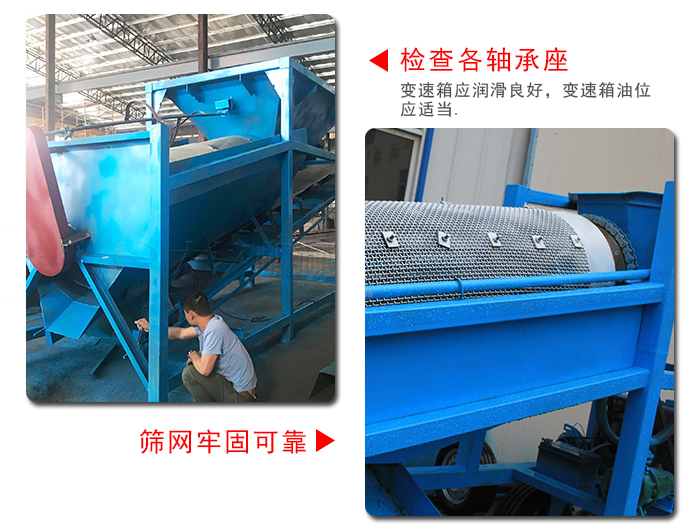 1.篩沙機(jī)在啟動(dòng)前先用手旋轉(zhuǎn)轉(zhuǎn)子,檢查機(jī)器各部有無(wú)異?,F(xiàn)象;