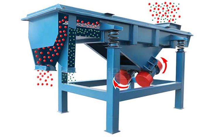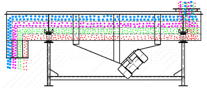 直線型振動(dòng)篩兩電機(jī)軸相對篩面有一傾角,在激振力和物料自重力的合力作用下,物料在篩面上被拋起跳躍式向前作直線運(yùn)動(dòng),從而 達(dá)到對物料進(jìn)行篩選和分級的目的??捎糜诹魉€中實(shí)現(xiàn)自動(dòng)化作業(yè)。