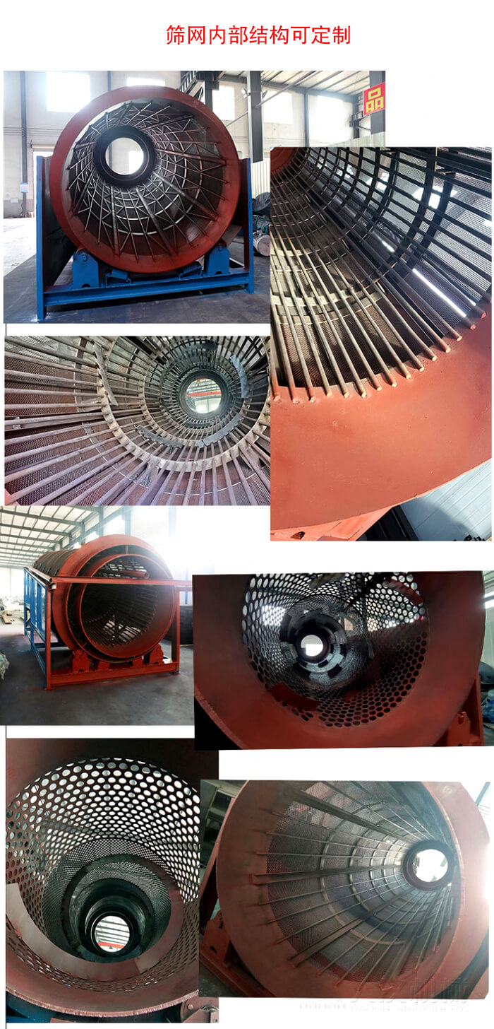 重型滾筒篩是由若干個(gè)圓環(huán)狀網(wǎng)組成,其總篩分面積遠(yuǎn)遠(yuǎn)大于其它篩型的篩分面積,再加上篩分效率高,設(shè)備運(yùn)行時(shí)間短,故而使用壽命較長(zhǎng) ,易損件少、維護(hù)量小。