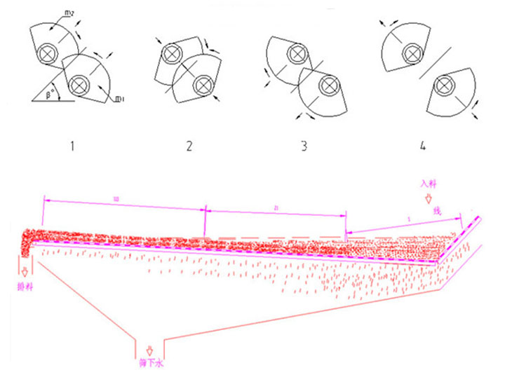 1,為了適應不同尾礦性質(zhì)差別,本篩振幅可調(diào),方法是調(diào)整主副偏心塊夾角,從而滿足不同性質(zhì)尾礦的脫水效果?!?/p>