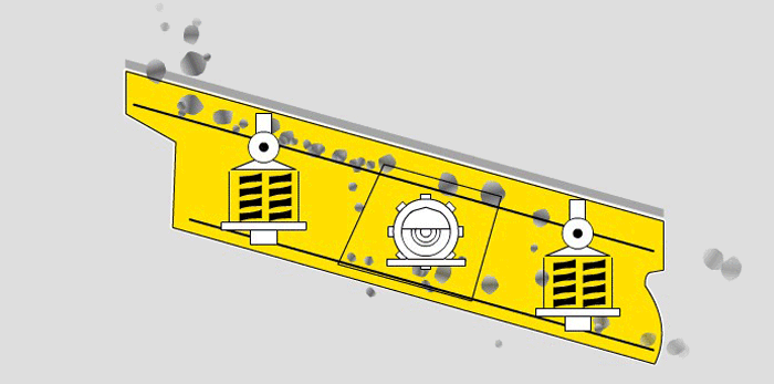 YK圓振動(dòng)篩分機(jī)工作原理是通過點(diǎn)擊經(jīng)三角帶,使激振器偏心塊產(chǎn)生高轉(zhuǎn)速,當(dāng)運(yùn)轉(zhuǎn)的偏心塊產(chǎn)生很大的離心力,激發(fā)振動(dòng)篩篩箱產(chǎn)生一定的振幅動(dòng)作,篩上物料在傾斜的篩面上受篩箱傳給的沖擊力而產(chǎn)生的連續(xù)拋擲動(dòng)作,讓物料與圓振篩篩面相遇的過程中將小于篩孔的顆粒過篩,實(shí)現(xiàn)篩分作業(yè)。