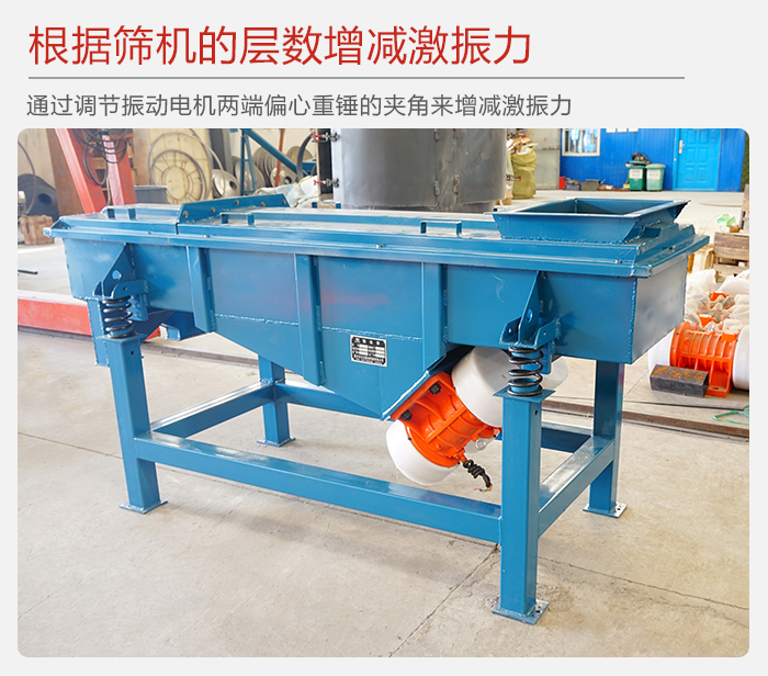 5、用戶可根據(jù)篩機(jī)的層數(shù),物料比重不同來增減篩機(jī)的激振力(通過調(diào)節(jié)振動(dòng)電機(jī)兩端偏心重錘的夾角來增減激振力),使篩機(jī)達(dá)到最佳的篩分效果。