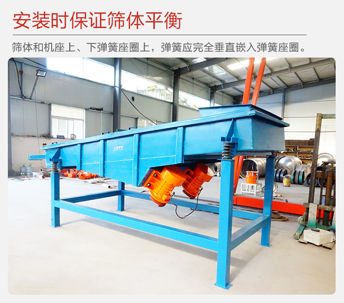 6、減振彈簧:阻止振動(dòng)傳給地面,同時(shí)支持篩箱的全部重量,安裝時(shí),彈簧必須垂直與地面。